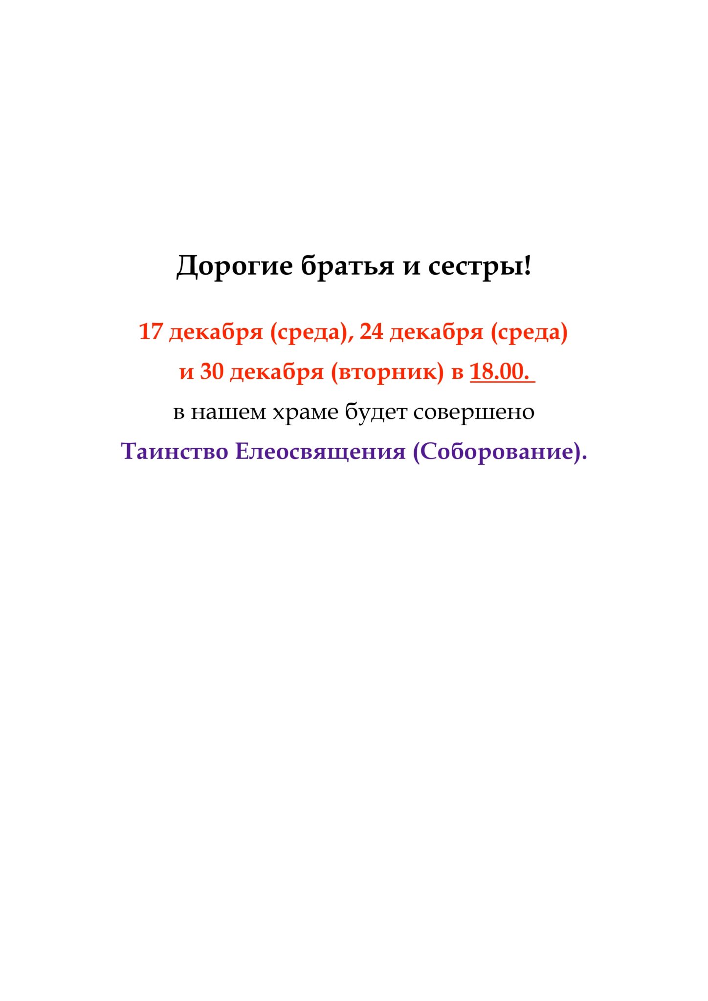 Расписание богослужений на ДЕКАБРЬ 2025 года